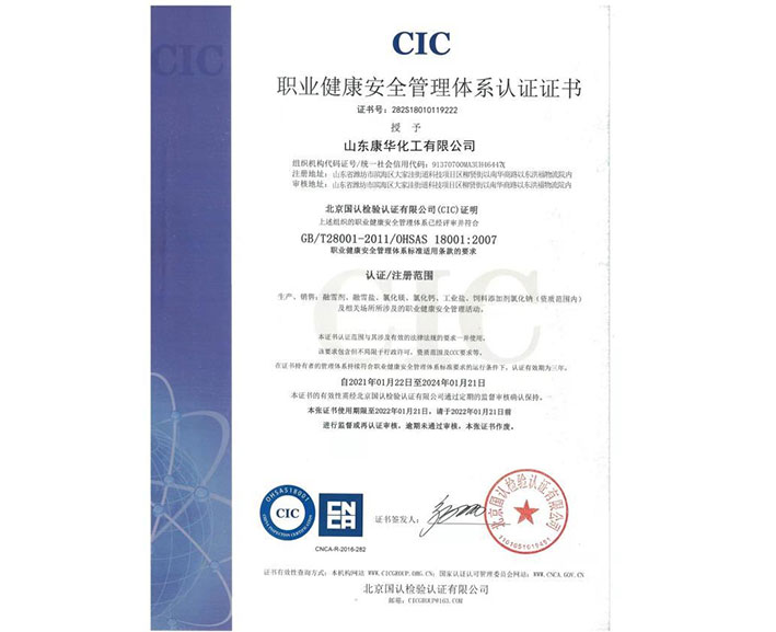 職業(yè)健康安全管理(lǐ)體(tǐ)系認證證書(shū)